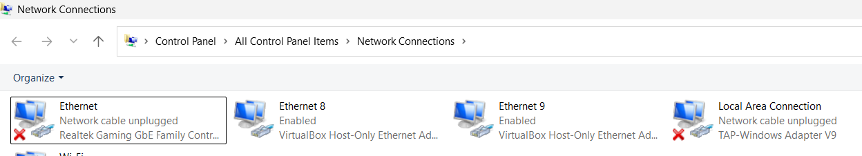 Here, you’ll see a list of all available network adapters, including: